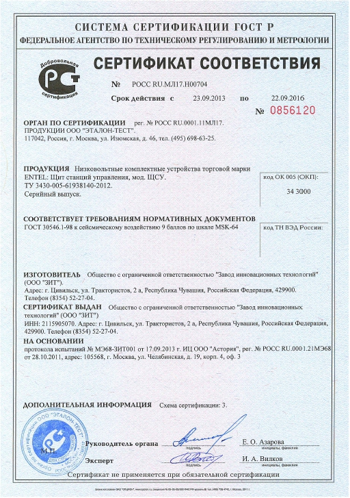 | Сертификат соответствия СМК | Сертификат соответствия УГП | Сертификат соответствия НКУ | Сертификат соответствия Статические переключатели нагрузки |